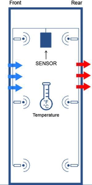 - Dieser Thermal Map Sensor erlaubt es außerdem die Messwerte der Temperatursensoren zu vergleichen und erleichtert es dadurch defekte Lüftungssysteme oder blockierte Luftwege innerhalb des Serverraums festzustellen, da die Temperatur in Bereichen ohne Lüftung im Normalfall höher ist.