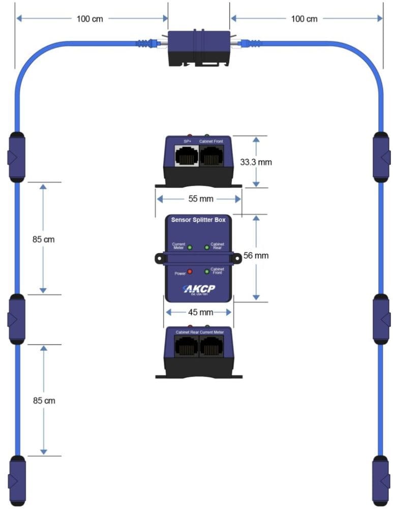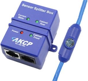 - Der Rack Thermal Map Sensor von AKCP besteht aus 2 Teilen, einer Sensor Splitter Box und einem Kabel mit 3x Temperatursensoren, die auf einem Rack Schrank montiert werden und gemeinsam die Erkennung von Temperaturschwankungen, Hotspots und Coldspots erleichtern.